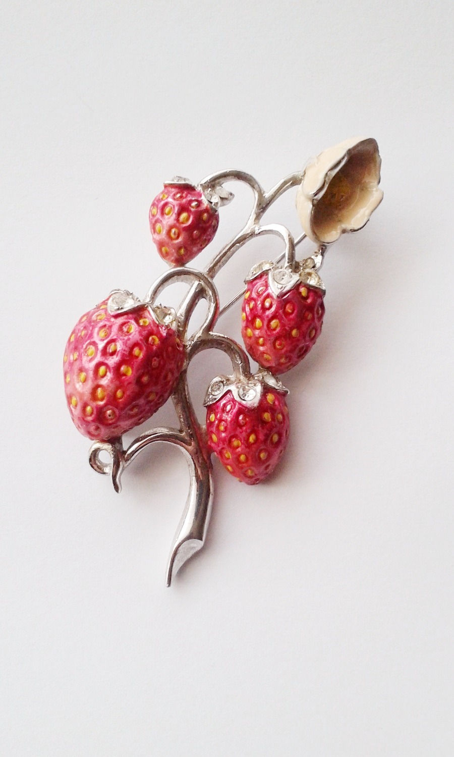 Бронь. Vintage Marcel Boucher Enamel Strawberry Pin Brooch.